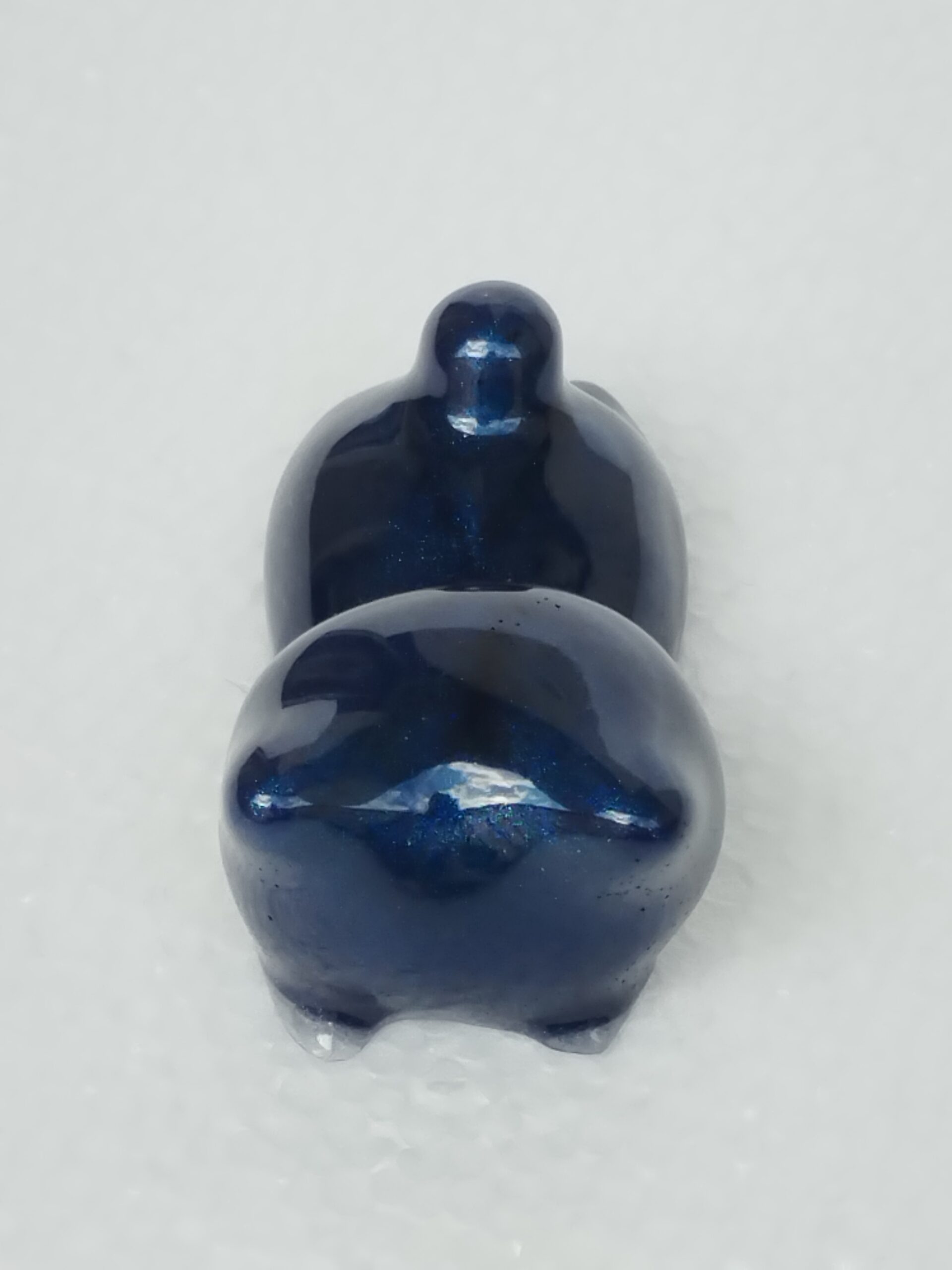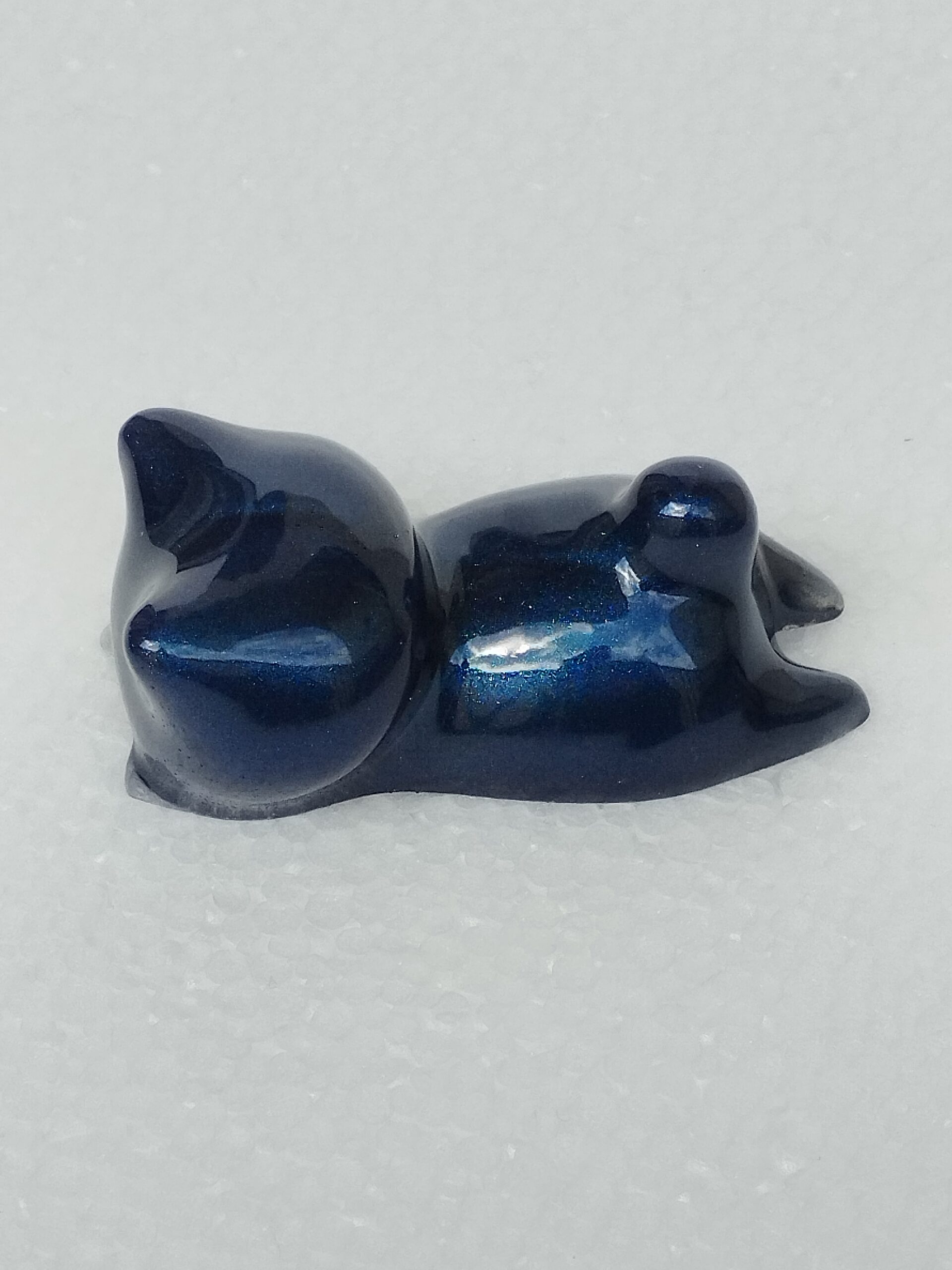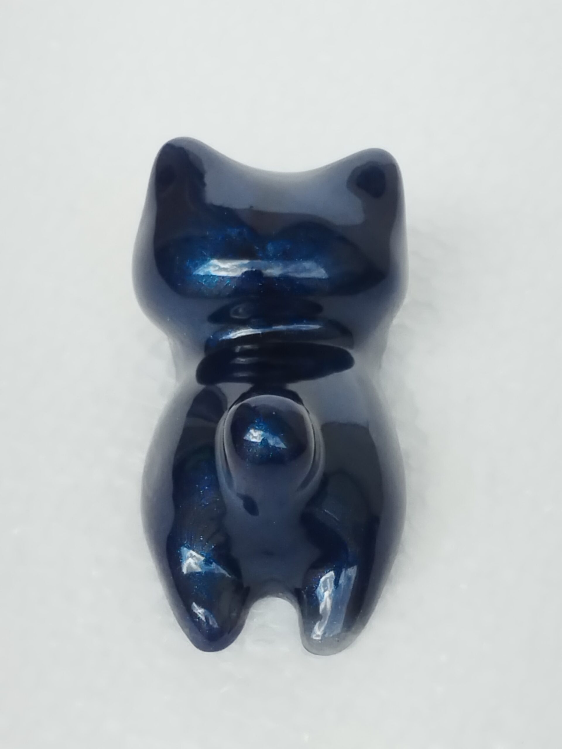 Chat en résine époxy bleu nuit métallisé, fait main, parfait comme porte-stylo ou décoration élégante et moderne.