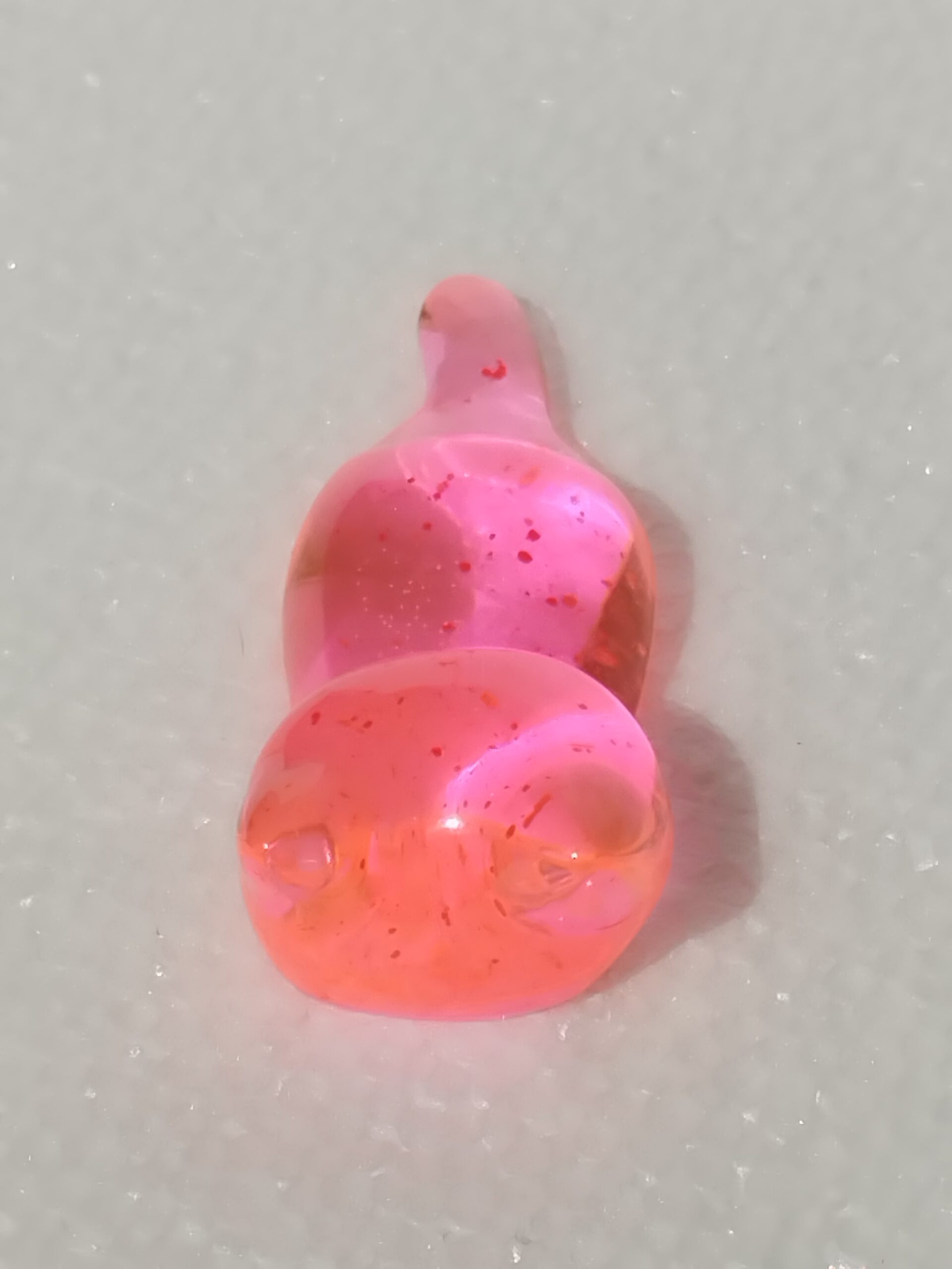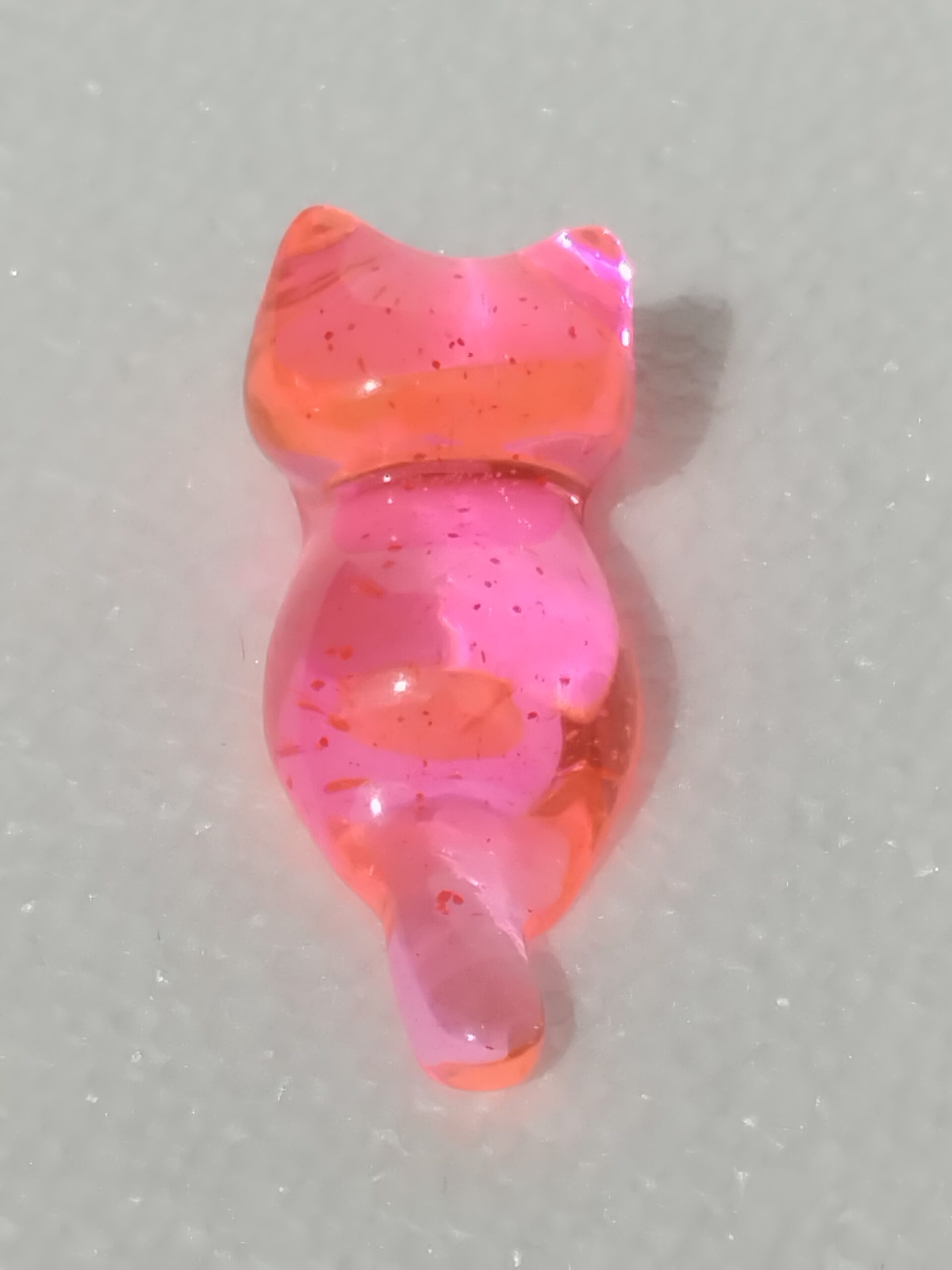 Chat en résine époxy rose fluo, fait main, parfait comme porte-stylo ou objet de décoration original et lumineux.
