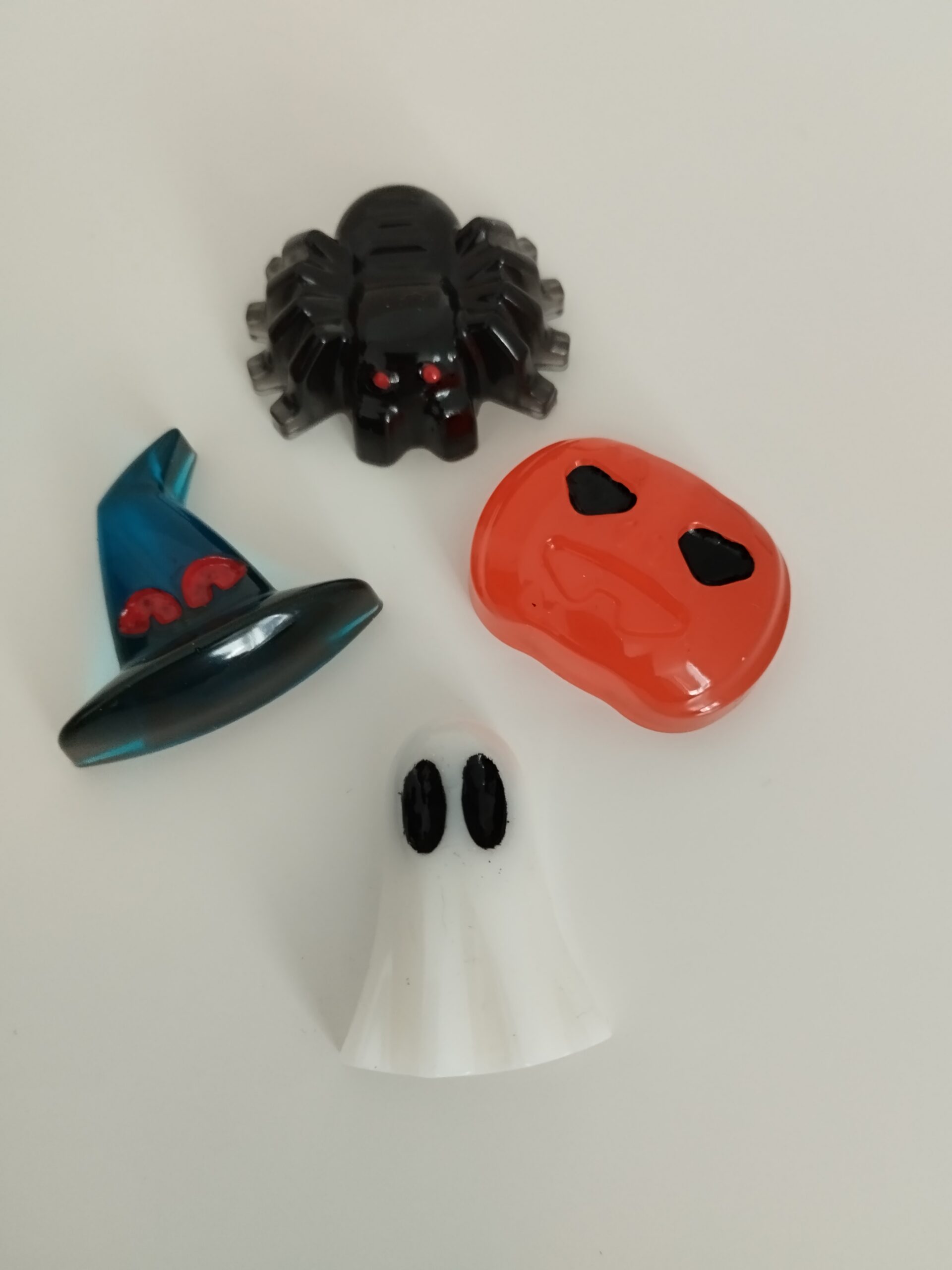 Plongez dans l’ambiance d’Halloween avec ce lot de 4 décorations faites main en résine époxy !