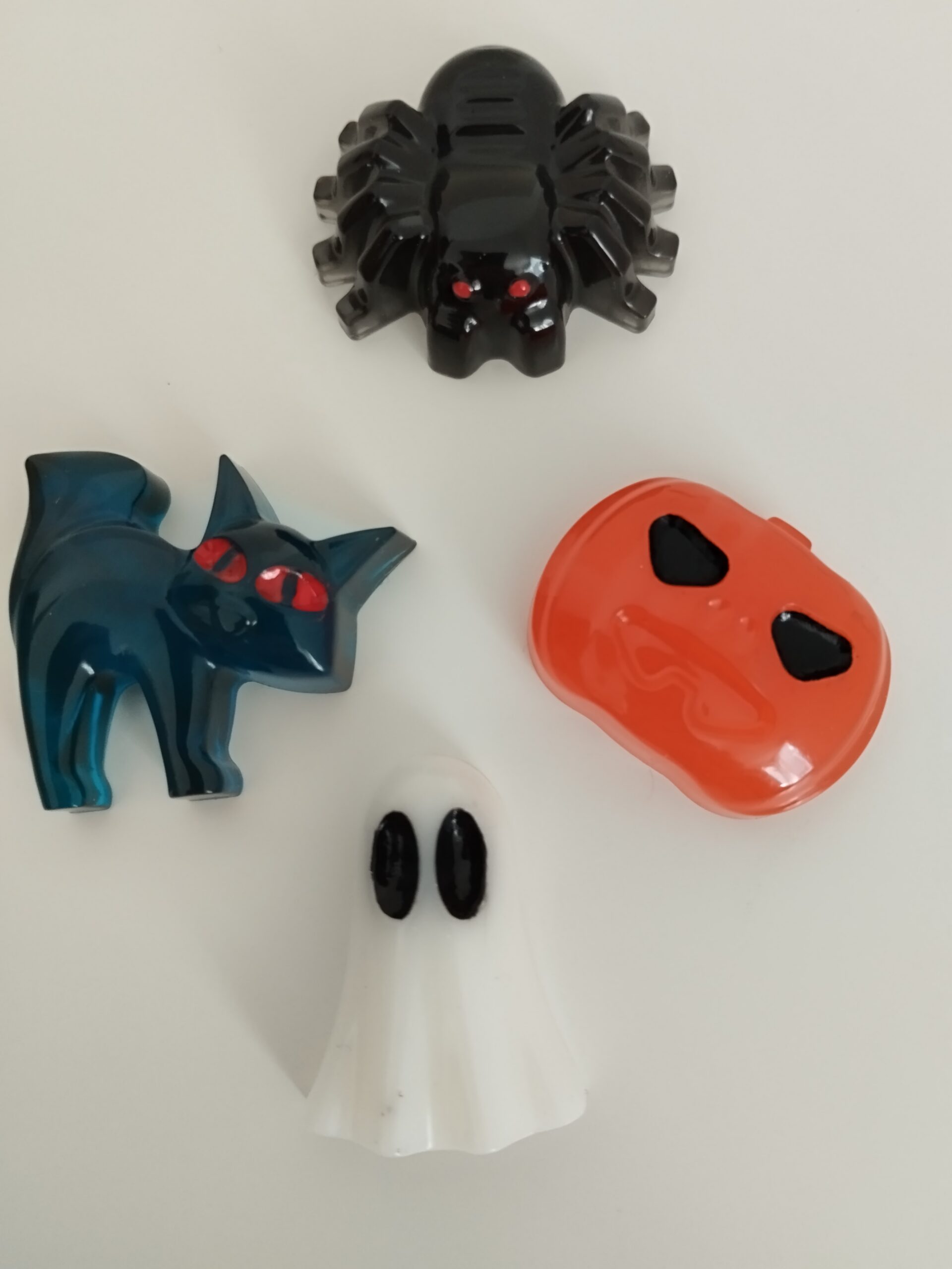 Plongez dans l’ambiance d’Halloween avec ce lot de 4 décorations faites main en résine époxy !