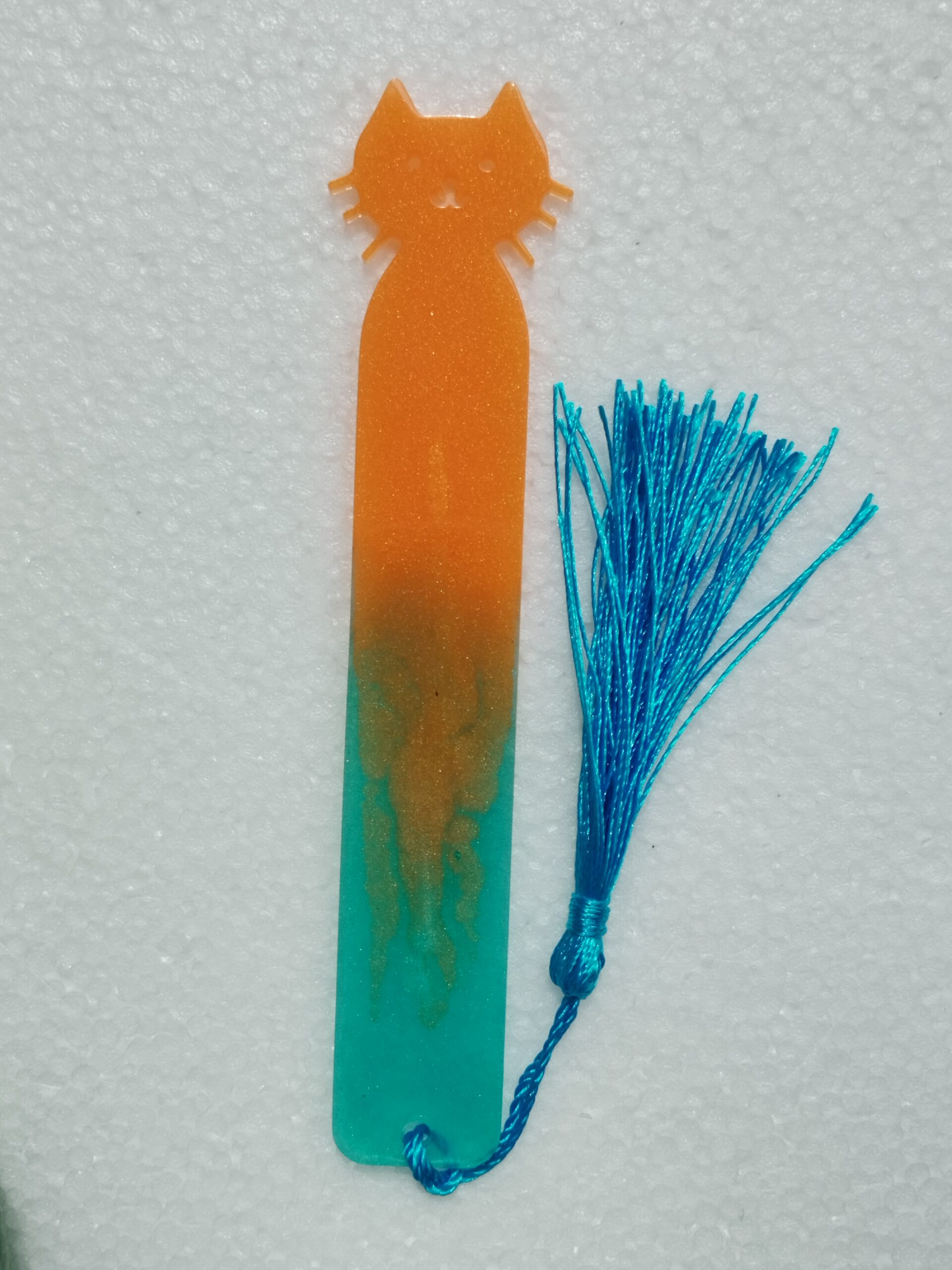 Marque-page chat orange et turquoise – Résine époxyDisponibilité : 1 en stock