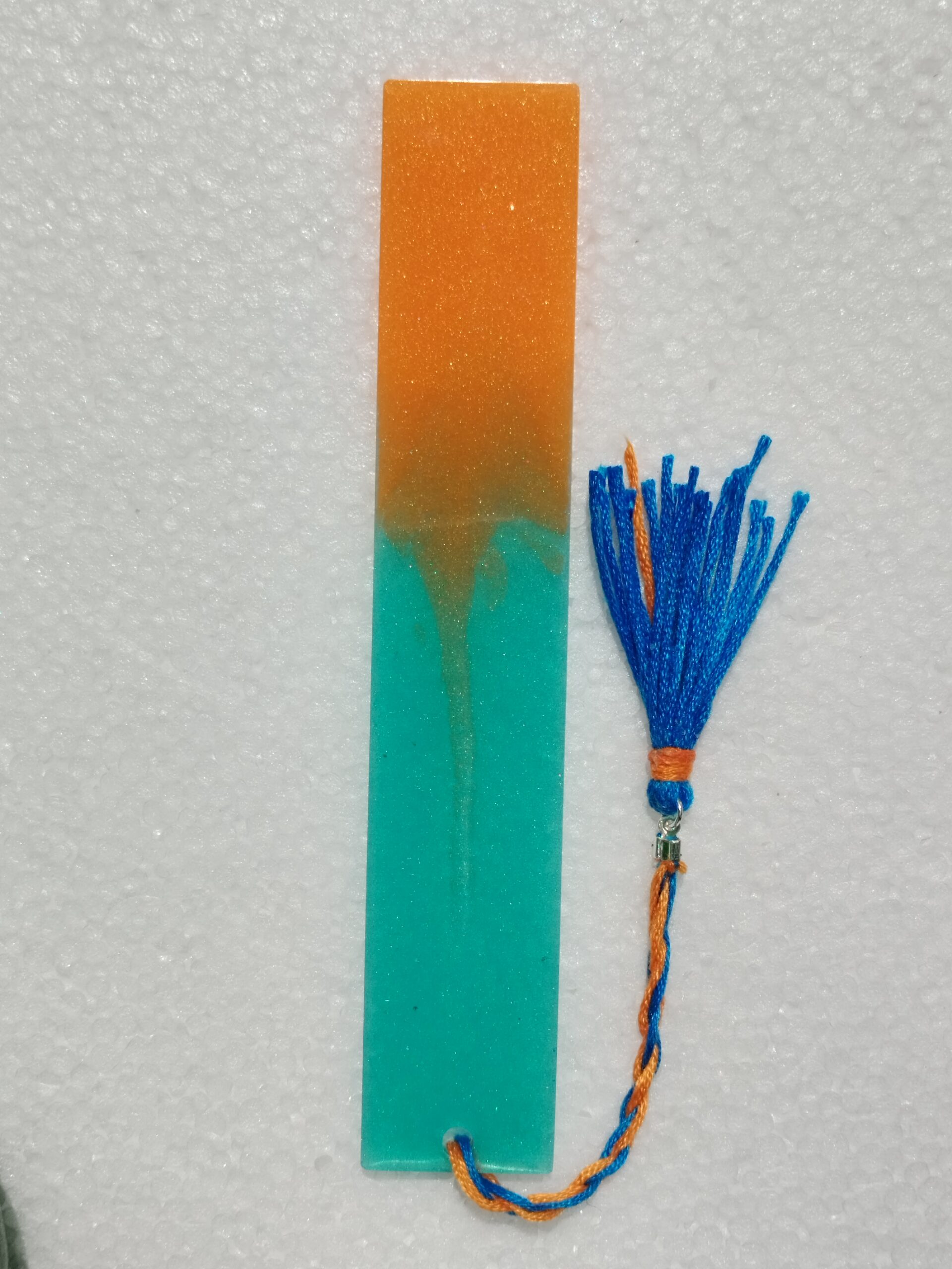 Marque-page orange et turquoise – Résine époxyDisponibilité : 1 en stock