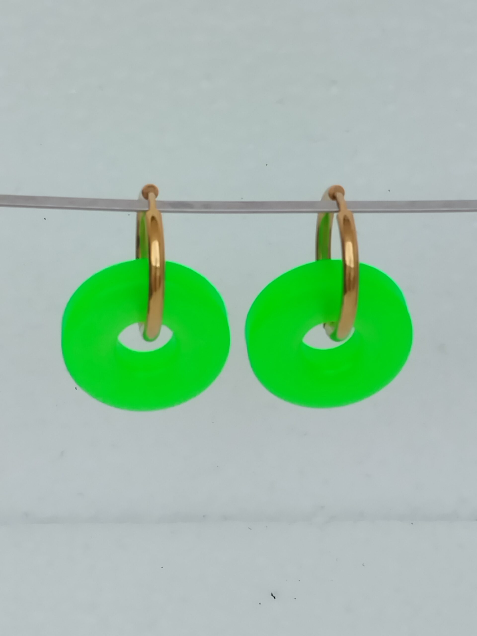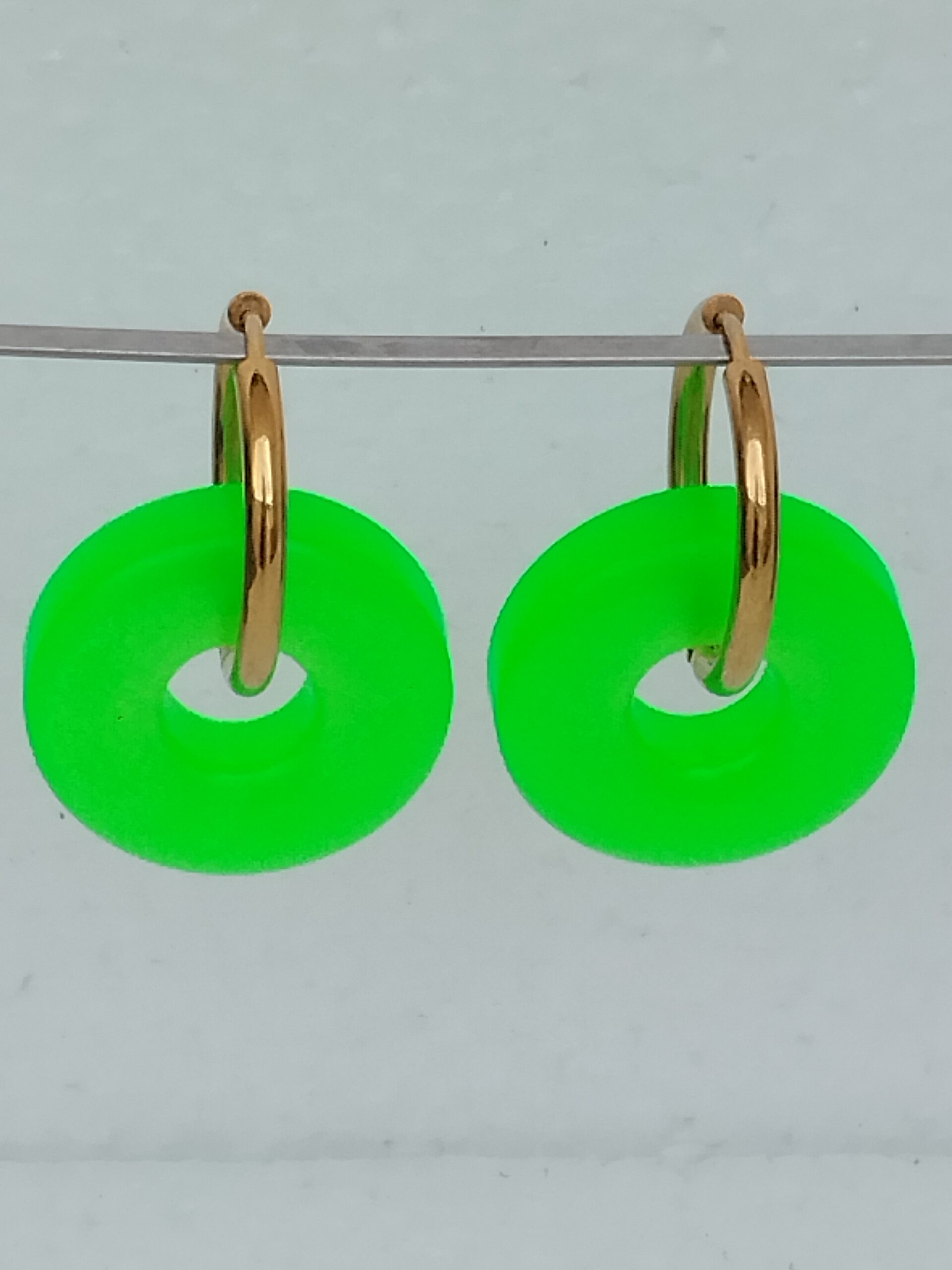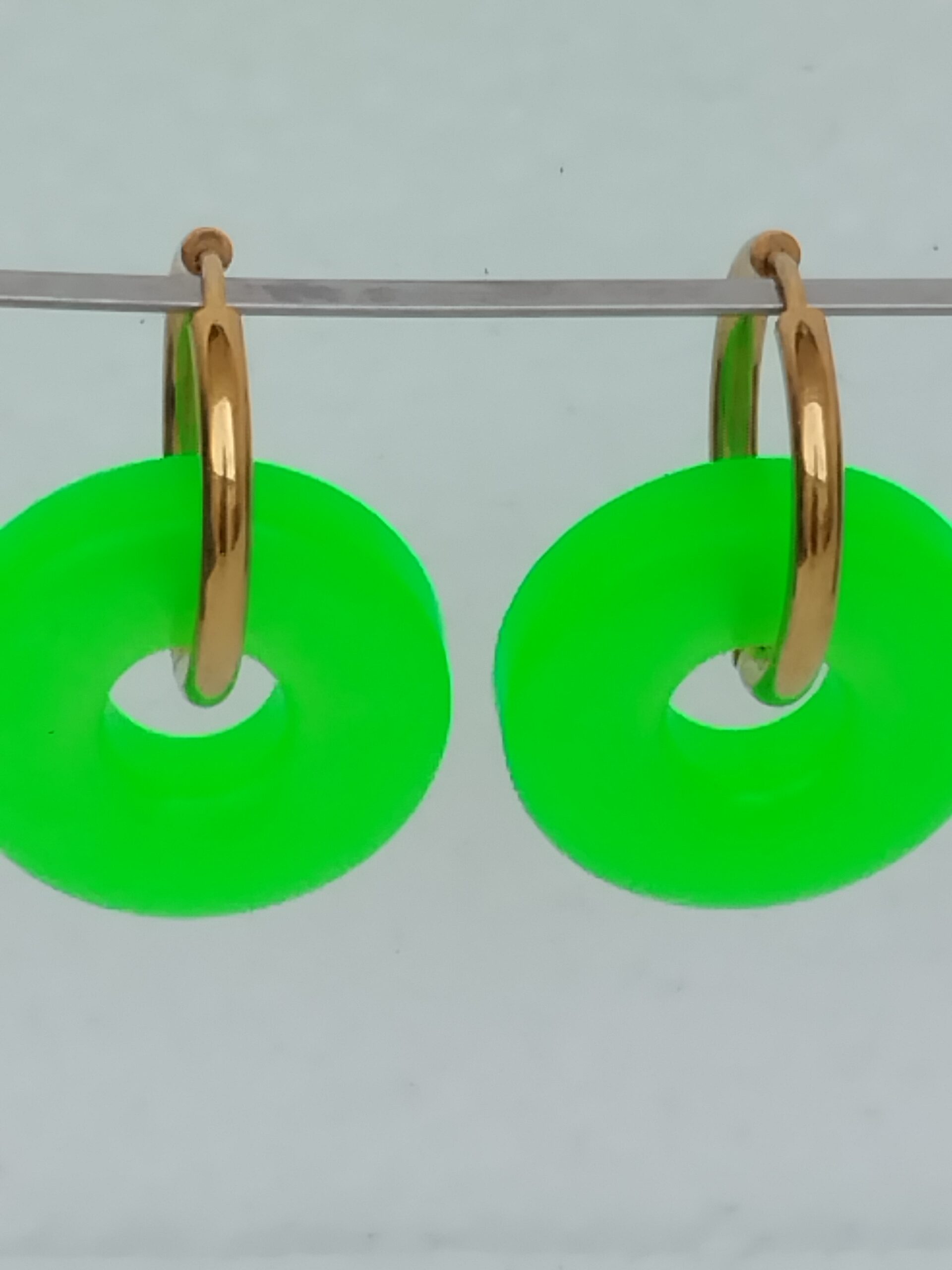 Pampilles en forme d’anneaux vert fluo, en résine époxy.