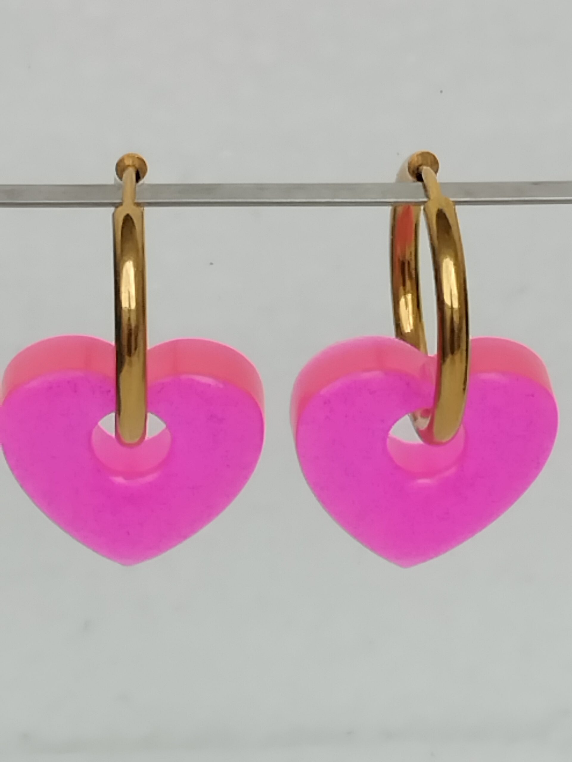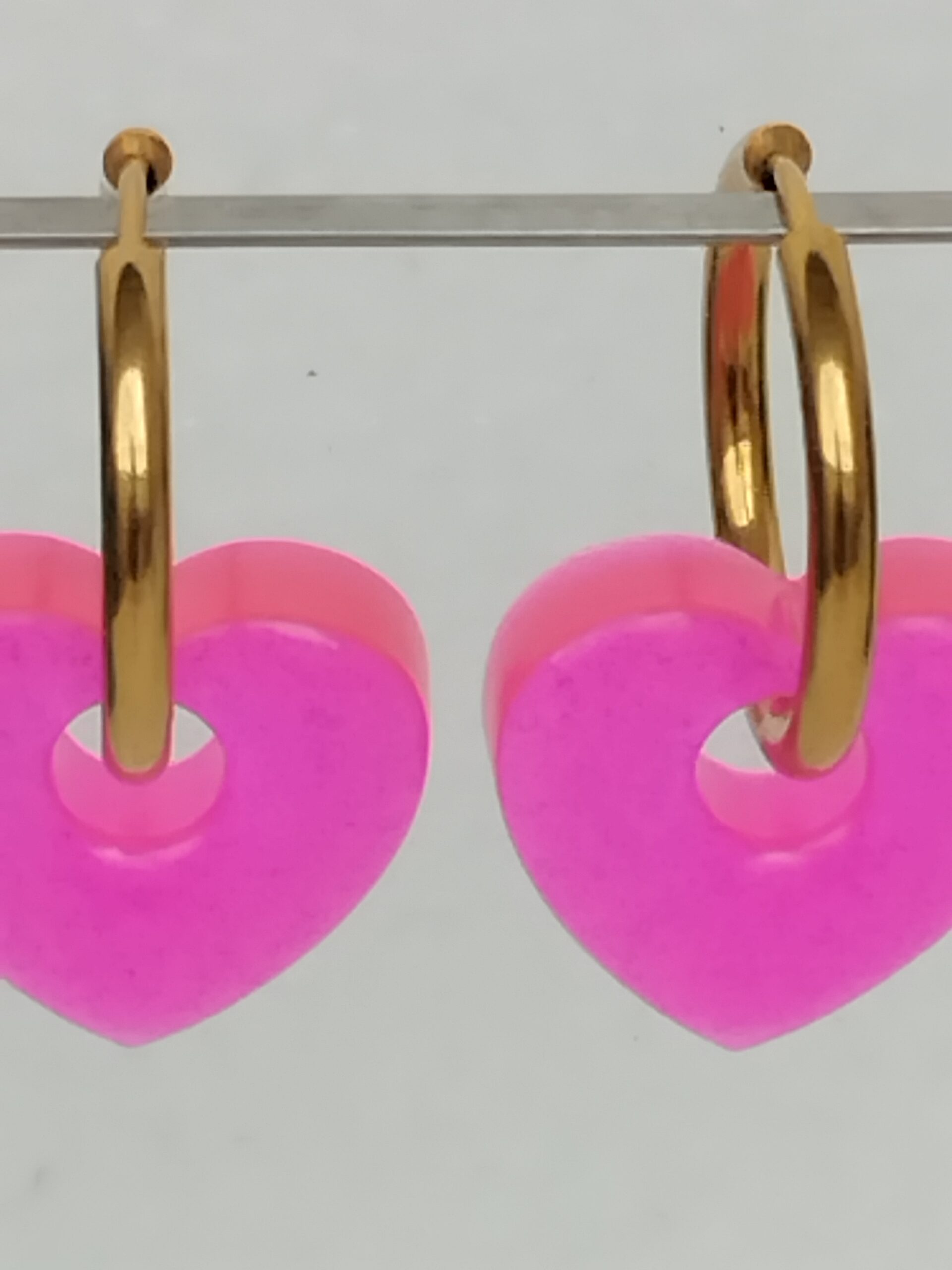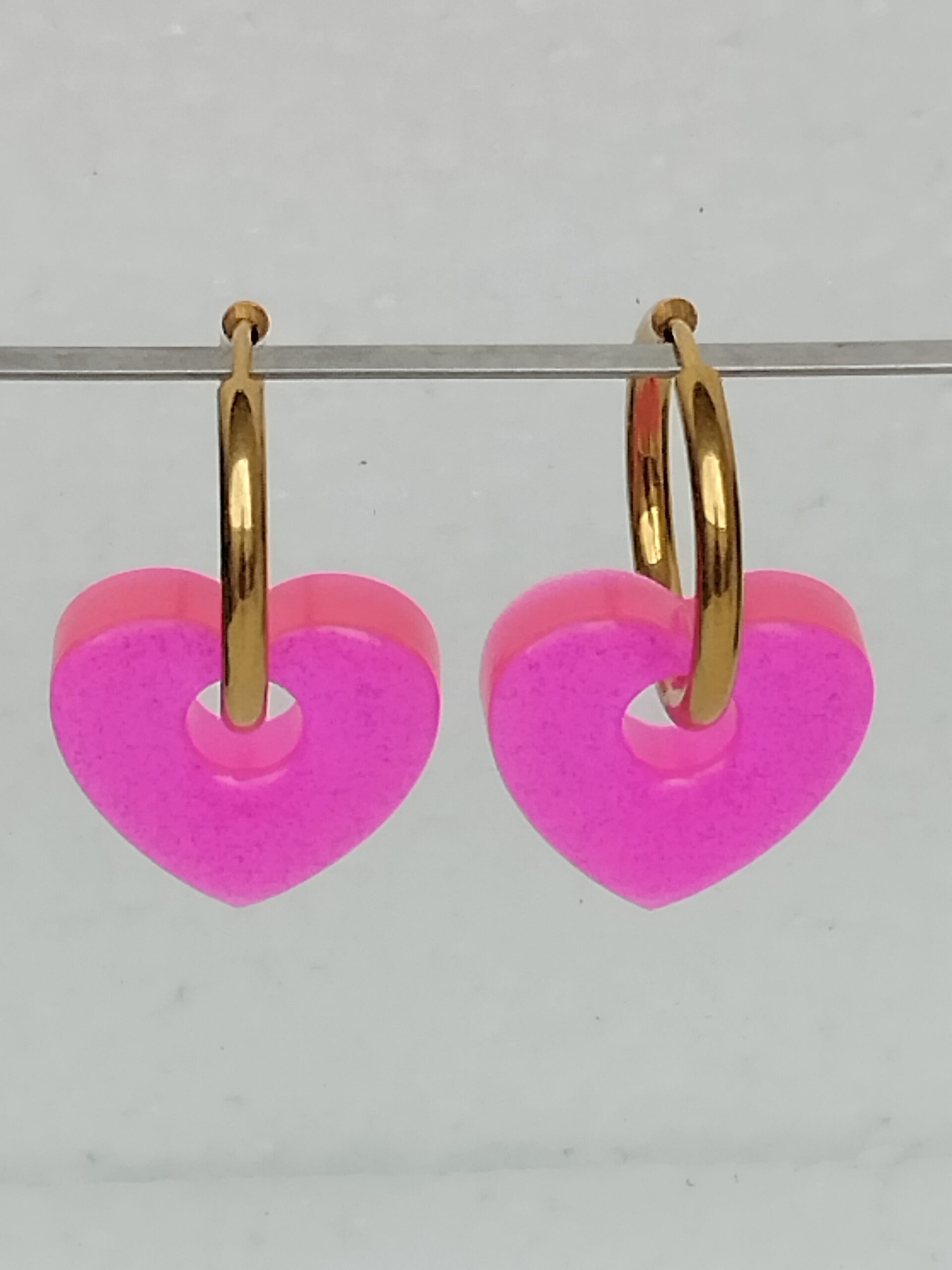 Pampilles cœurs rose fluo phosphorescents en résine époxy