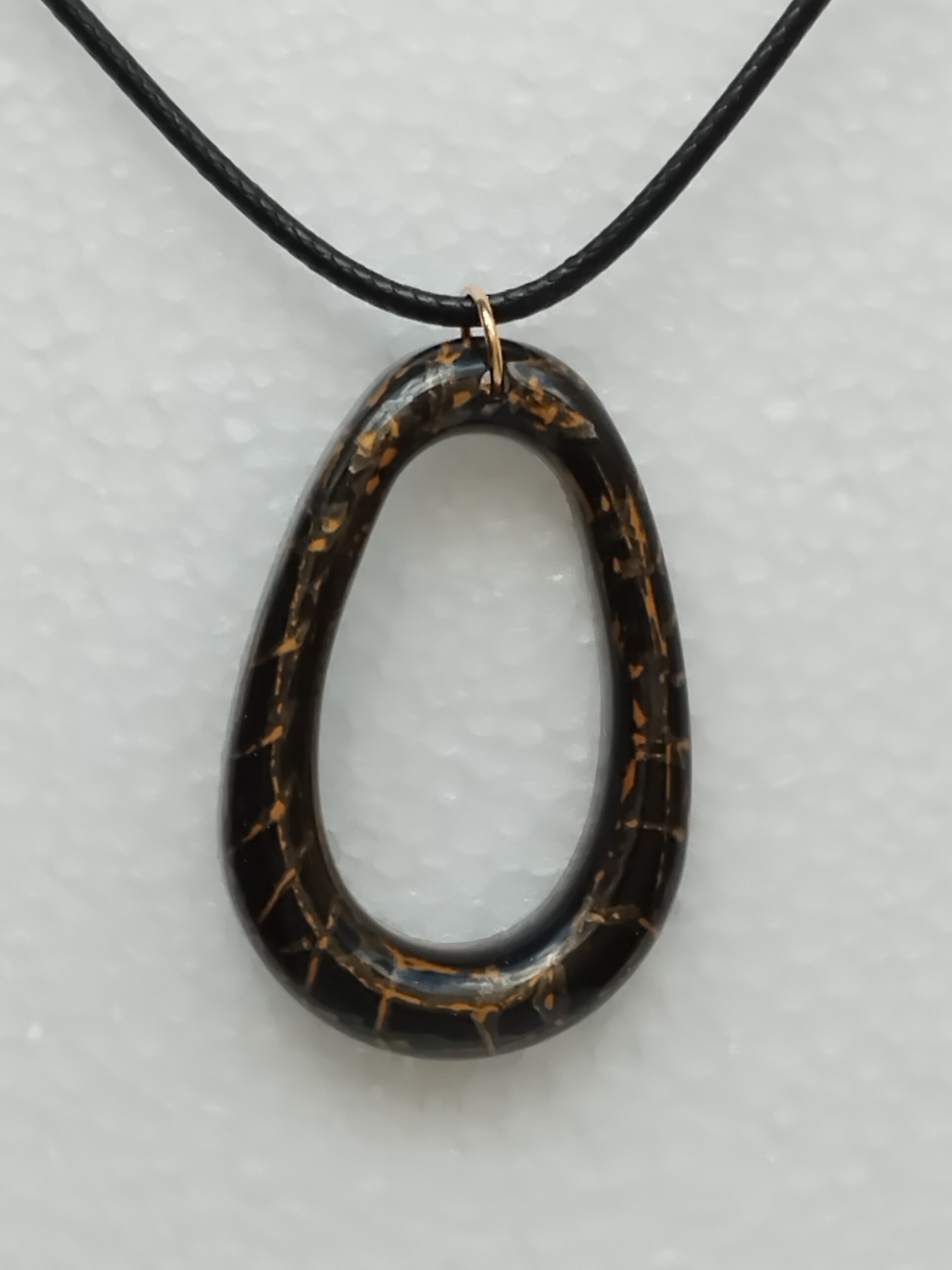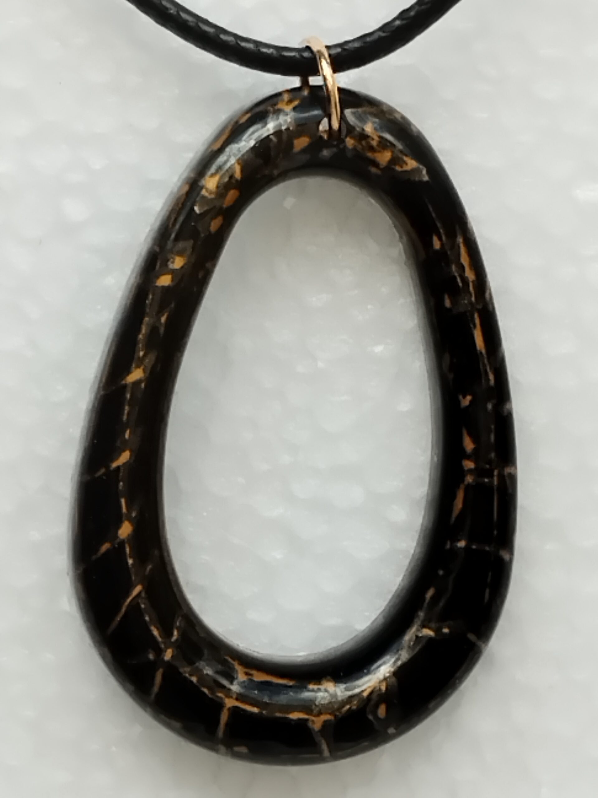 Pendentif ovale noir et or en résinePendentif ovale noir et or en résine